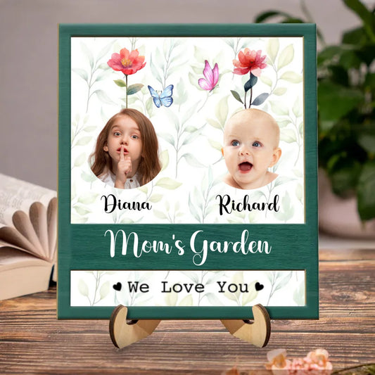 Family - Custom Photo Nana's Garden We Love You - Personalized 2-Layered Wooden Plaque With Stand