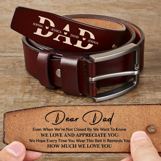 Family - Dad It Reminds You How Much We Love You - Personalized Engraved Leather Belt