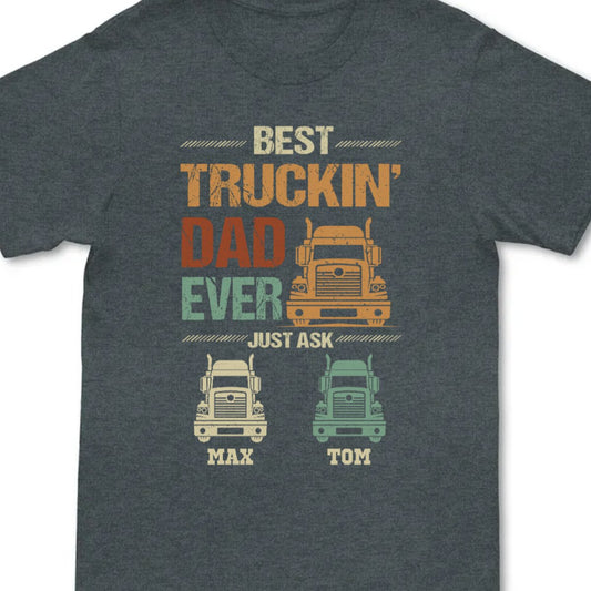 Best Truckin' Dad Ever Just Ask - Personalized T-shirt - Father's Day Gift For Trucker Dad
