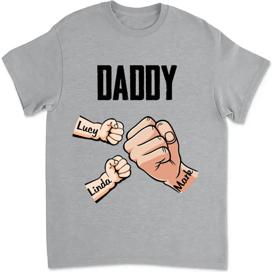 Father's Day - Dad With Kids Hand To Hand - Personalized Unisex T-shirt