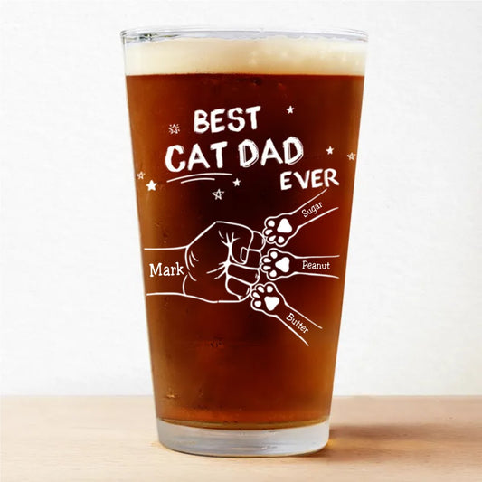Pet Lovers - Best Dog Dad Ever Hand Punch - Personalized Pint Glass (TB)