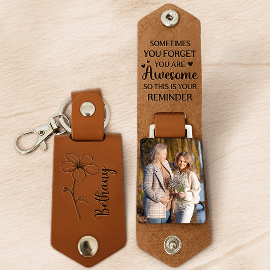 Custom Photo Sometimes You Forget You Are Awesome - Personalized Leather Photo Keychain
