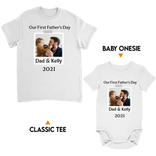 Father - Our First Father's Day - Personalized Photo Matching Shirt