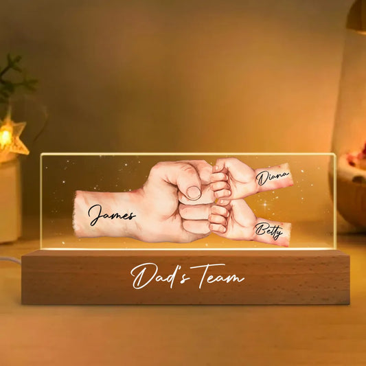 Family - Daddy's Team Fist Bump - Personalized Acrylic LED Lamp Night Light (HJ)