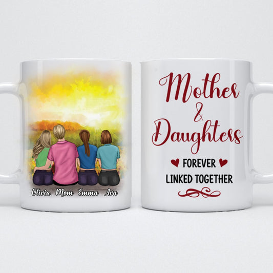 Mother -Mother & Daughters Forever Linked Together- Personalized Mug (Sunflower)