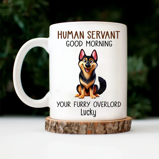 Funny Cartoon Dogs Good Morning Dog Human Servant Personalized Mug, Gift For Dog Lovers