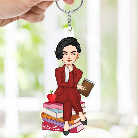 Doll Teacher Sitting On Books Personalized Acrylic Keychain