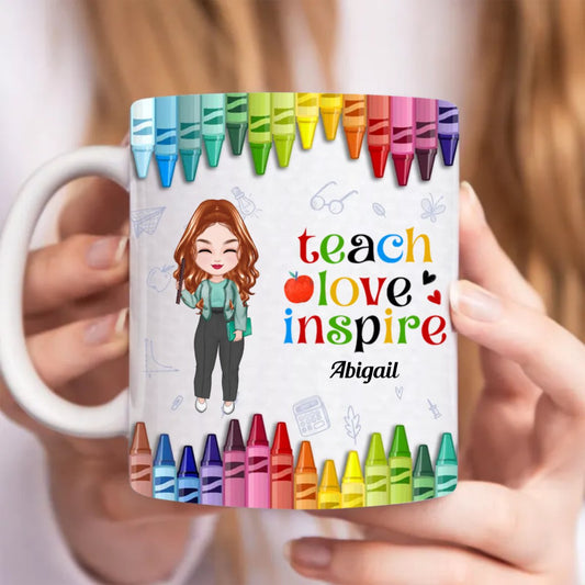 Teacher - Colorful Crayon Teach Love Inspire - Personalized Mug