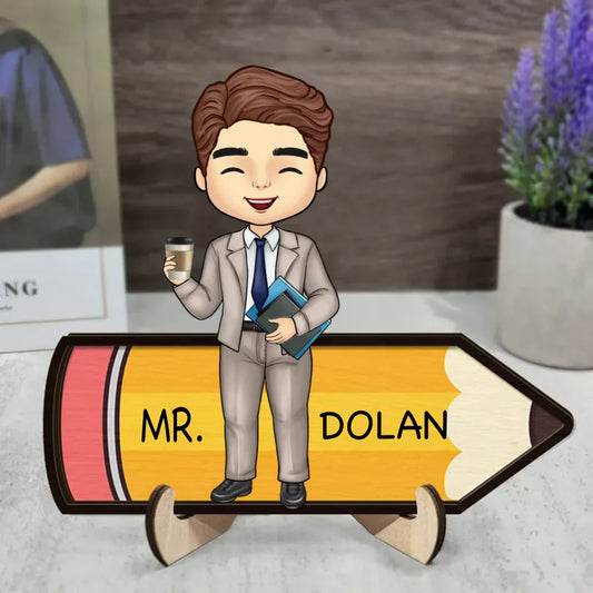 Teacher - Teacher Pencil - Personalized 2-Layered Wooden Plaque With Stand