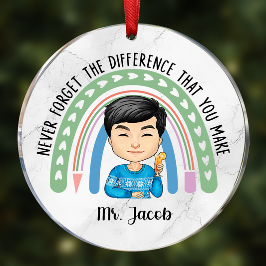 Teacher Never Forget The Difference That You Make - Personalized Circle Ornament
