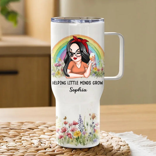 Teacher - Helping Little Minds Grow - Personalized Tumbler With Handle