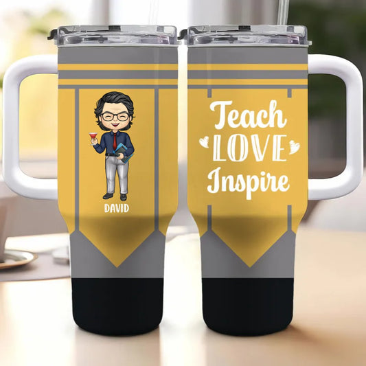 Teacher - Teach Love Inspire - Personalized Tumbler With Handle