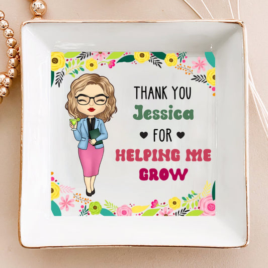 Teacher - Teacher Gift Thank You For Helping Me Grow - Personalized Jewelry Dish