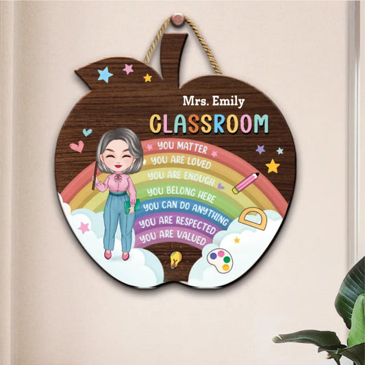 Teacher - Welcome To My Classroom - Personalized Shaped Wood Sign