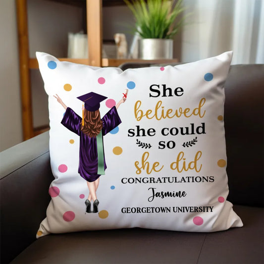 Graduation - She Believed She Could So She Did Congratulations - Personalized Pillow