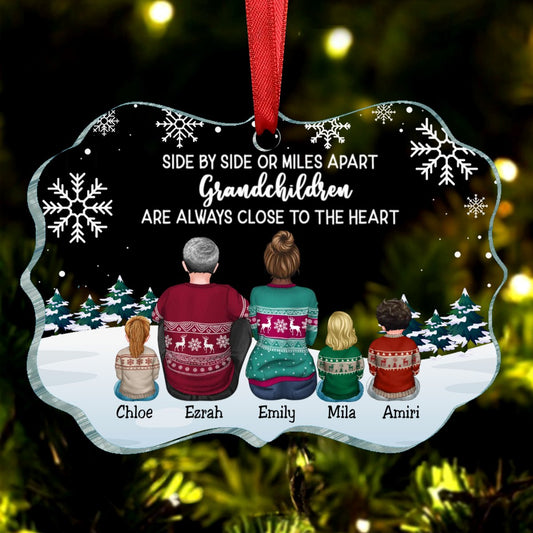 Family - Side By Side Or Miles A Part Grandchildren Are Always Close To The Heart - Personalized Acrylic Ornament(NV)