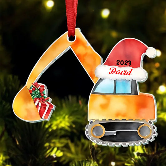 Grandson- Truck Excavator Christmas - Personalized Ornament