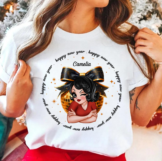 Happy New Year 2025 Black And Gold Glitter Disco Ball Personalized Shirt, New Year Gift For Yourself