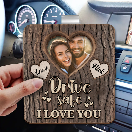 Custom Photo Drive Safe I Love You Engraved Tree - Personalized Custom Shaped Car Visor Clip