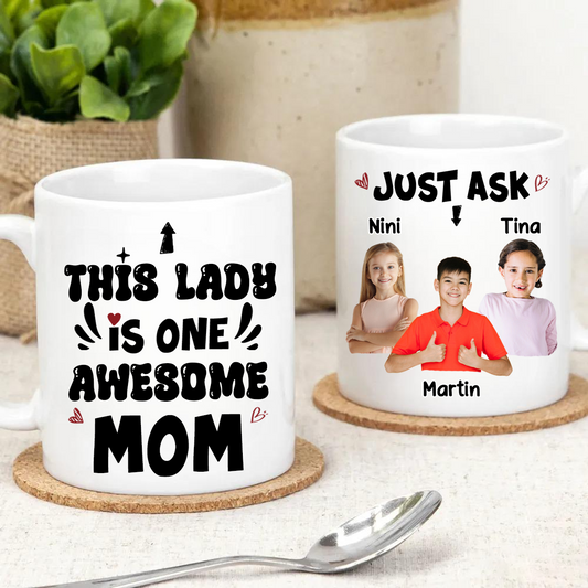 Custom Photo This Lady Is One Awesome Mom - Personalized Mug