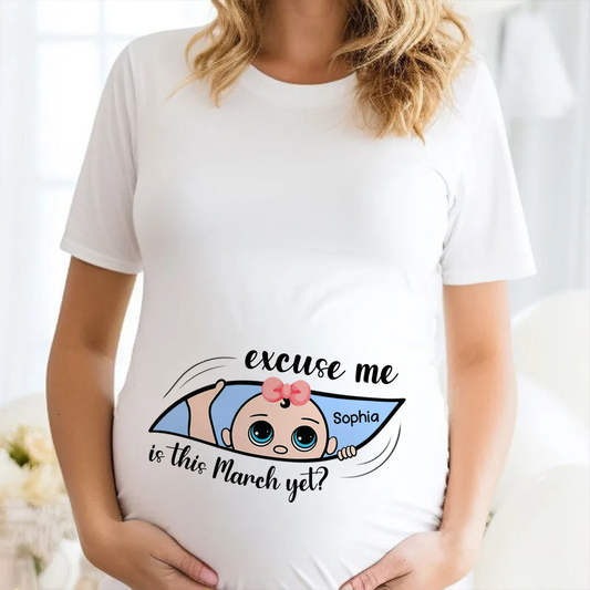 Personalized Maternity Shirt, Excuse Me Is It Yet, Pregnancy Announcement, Expecting Parents
