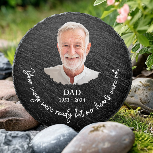 Custom Photo Memorial Your Wings Were Ready - Personalized Circle Memorial Garden Stone