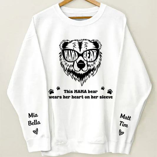 Family - This Mama Bear Wears Her Heart On Her Sleeve - Personalized Sweatshirt