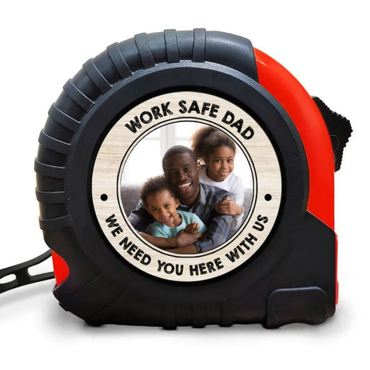 Family - Work Safe Daddy We Need You Here With Us - Personalized Tape Measure