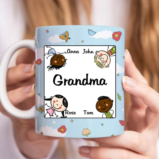 Family - Nana Grandma Mommy Cartoon Happy Kids - Personalized Mug