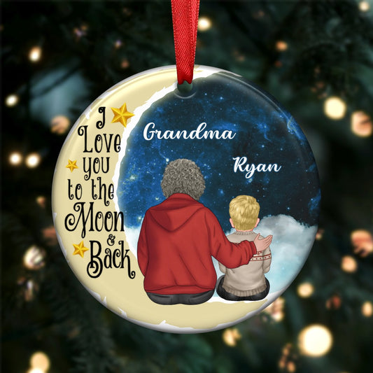Grandma Grandkids - I love you to the moon and back - Personalized Circle Ornament