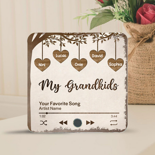 Grandkids Make Life More Grand Hanging Hearts Personalized Music Fridge Magnet, Mother's Day Gift for Grandma