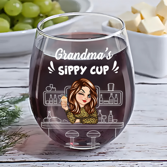 Grandma's Sippy Cup - Personalized Stemless Wine Glass