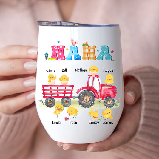 Grandma - Celebrate Easter With Grandma And Grandchildren - Personalized Wine Tumbler