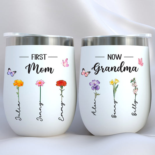 Mother - First Mom Now Grandma - Personalized Wine Tumbler