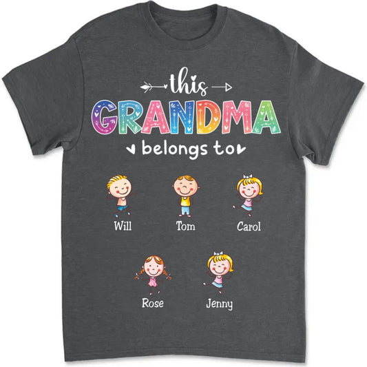 Grandma - This Grandma Belongs To Grandkids - Personalized Unisex T-shirt (HH)