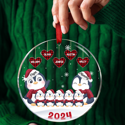 Papa Nana Penguin Christmas Grandparents - Personalized Circle Ornament