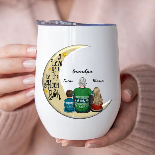Grandpa - Grandpa Grandkids On Moon - Personalized Wine Tumbler