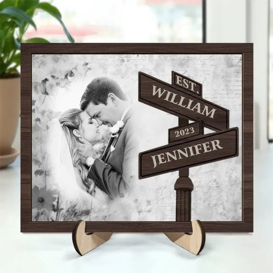 Couple - Custom Photo First Anniversary - Personalized 2-Layered Wooden Plaque With Stand