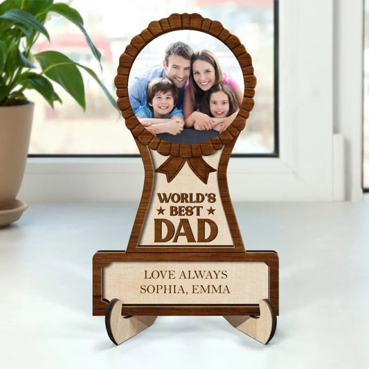 Father - Custom Photo Best Dad Ever - Personalized 2-Layered Wooden Plaque With Stand