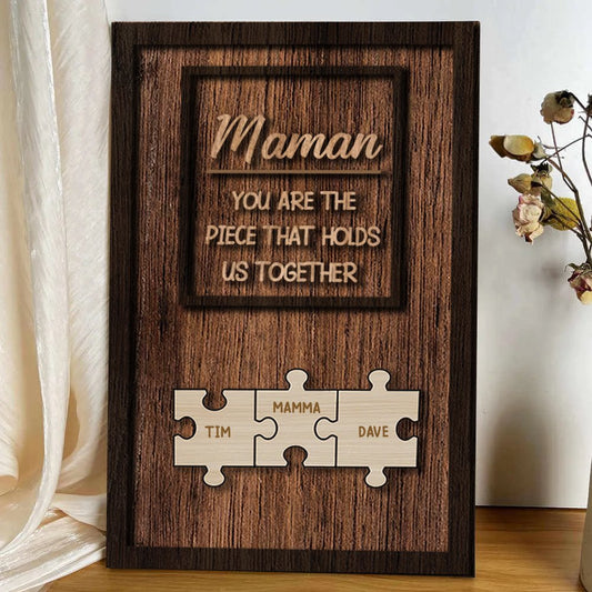 Mom Puzzle Sign Customized Gift For Mother's Day - Personalized 2-Layered Wooden Plaque