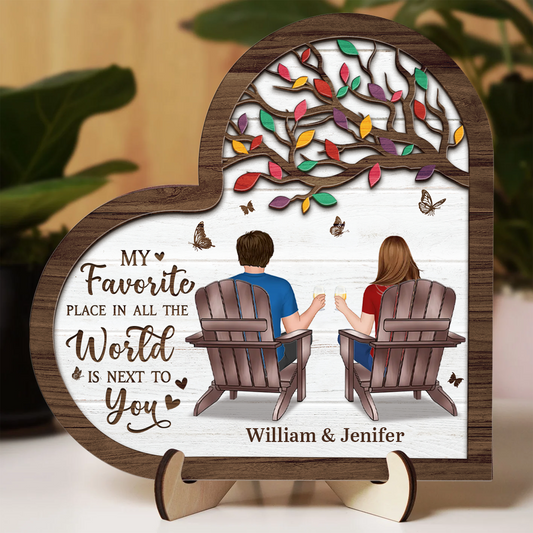 My Favourite Place In All The World - Gift For Couples - Personalized 2-Layered Wooden Plaque With Stand