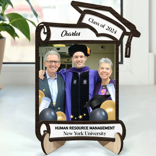 Family - Custom Photo Graduation Appreciation - Personalized 2-Layered Wooden Plaque With Stand (HJ)
