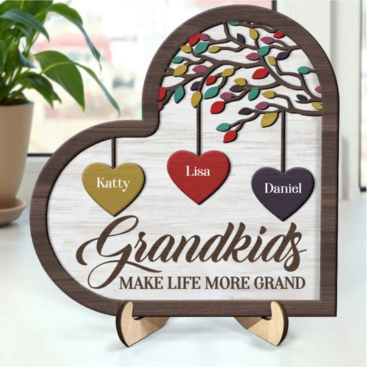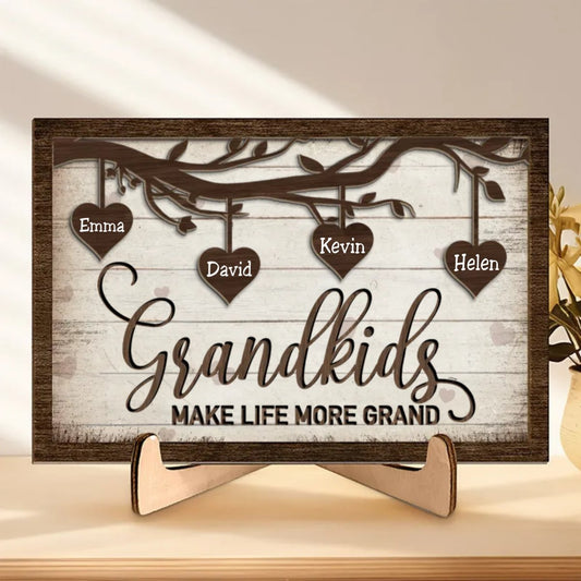 Family - Grandkids Make Life Grand - Personalized 2-Layered Wooden Plaque With Stand