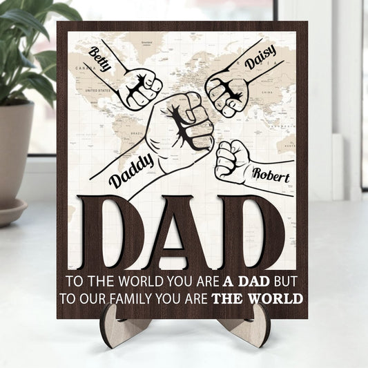 Father - To The World You Are A Dad But To Our Family You Are The World - Personalized 2-Layered Wooden Plaque With Stand