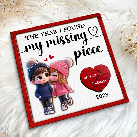 The Year I Found My Missing Piece Cute Couple Walking Personalized 2-Layered Wooden Plaque, Valentine's Day Gift for him, Gift for her