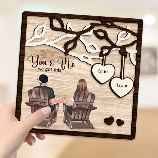 Couple Back View Sitting Under Tree Personalized 2-Layer Wooden Plaque, Valentine‘s Day Gift For Him, For Her