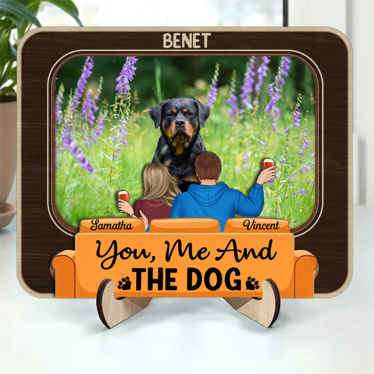 Custom Photo You, Me And The Dog Cat - Personalized 2-Layered Wooden Plaque With Stand
