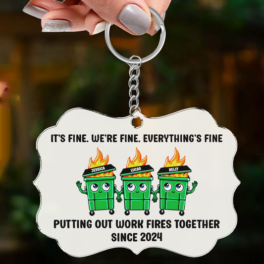 Putting Out Work Fires Together Work Bestie Dumpster Fire Funny Gift For Colleagues Personalized Keychain