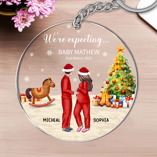 Personalized Twins Baby's First Christmas On the Inside Acrylic Keychain, Custom Pregnancy Reveal Acrylic Keychain, Expecting Parents