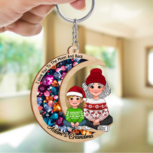 Gorgeous Moon Grandma Grandkid I Love You To The Moon And Back Personalized Acrylic Keychain